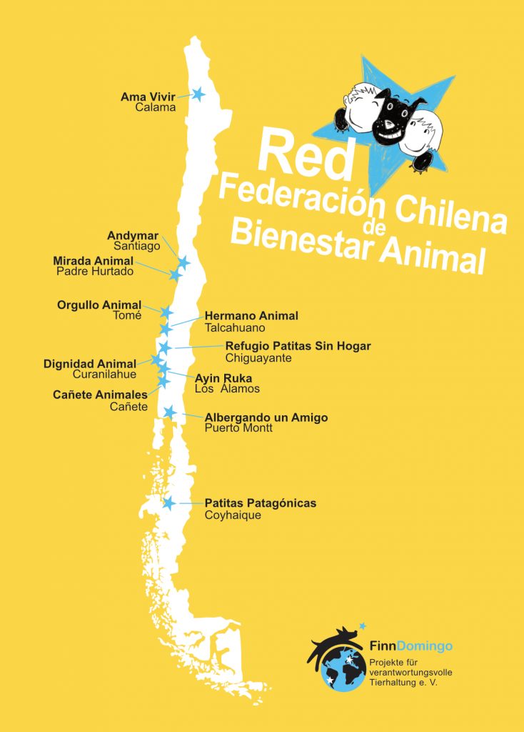 En octubre de 2019, tres organizaciones chilenas de protección animal decidieron trabajar juntas en lugar de una al lado de la otra o incluso una contra la otra, como lamentablemente pasa a menudo en este ámbito, tanto en Chile como en Alemania. Junto con FinnDomingo e.V., dichas organizaciones querían reunir a tantas asociaciones chilenas como fuera posible bajo un mismo techo para, con el tiempo, establecer una entidad nacional siguiendo el modelo de la Federación Alemana de Bienestar Animal. Desde entonces, la Red “Federación Chilena de Bienestar Animal” ha crecido y actualmente cuenta con 11 asociaciones afiliadas.