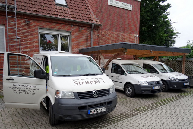 Además, hacer las compras para la cocina de piensos con el “Struppi-Mobil” de Hannover es algo que le gusta mucho a María. En Chile, tiene que organizar cada día de nuevo los trámites para su estación de rescate y, sobre todo, el transporte de los perros rescatados. Eso cuesta mucho tiempo y energía. Un “refugio móvil” sería, por lo tanto, un gran sueño para ella.