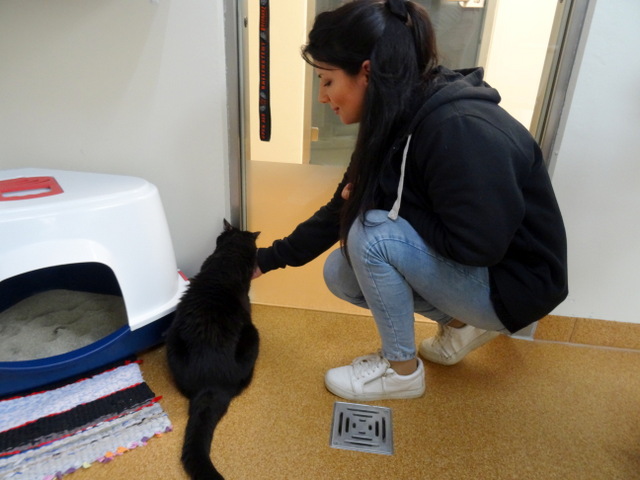 El trabajo en la “casa de gatos” del refugio de animales en Hannover es nuevo para María. No se ve muchos gatos en las calles en Chile, ya que están dominadas por perros callejeros. En el refugio de Hannover dar paseos a los perros es parte del trabajo diario.